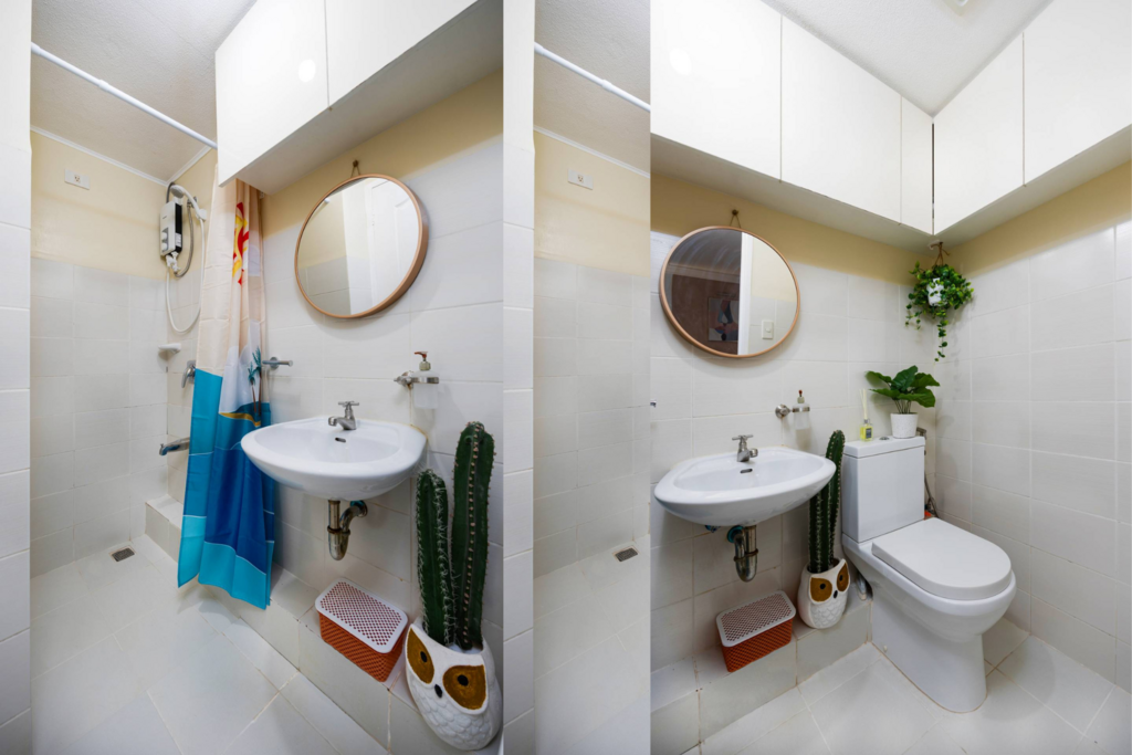 The toilet and bath area combines coziness and functionality, crafted to offer a relaxing yet practical experience. With a clean aesthetic infused with a hint of terracotta Mediterranean charm, this space provides a soothing environment for your personal care routines. Ample storage options keep your essentials organized and within easy reach, while carefully curated details enhance the inviting ambiance.