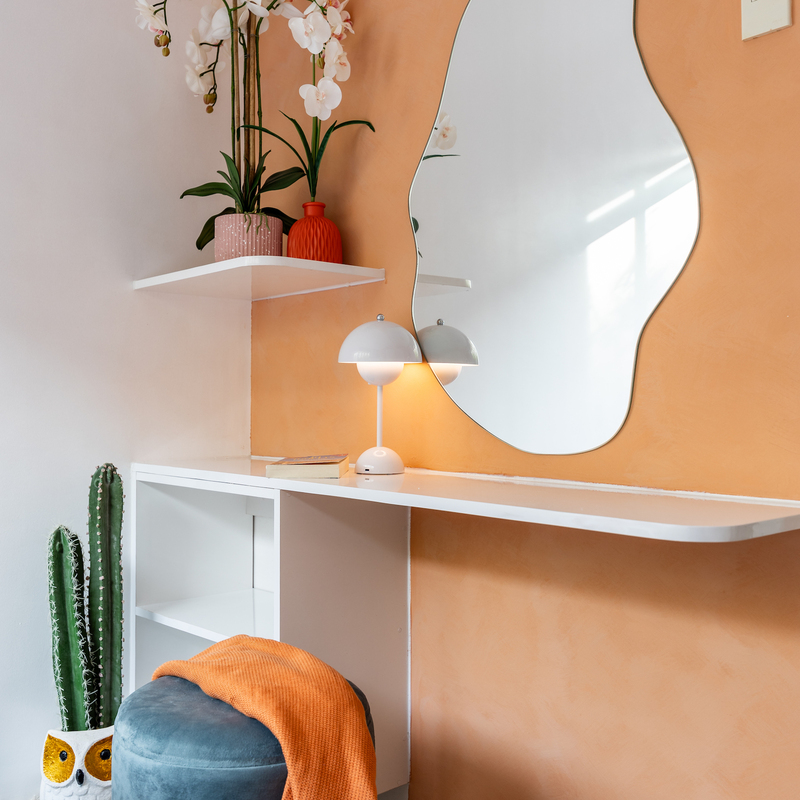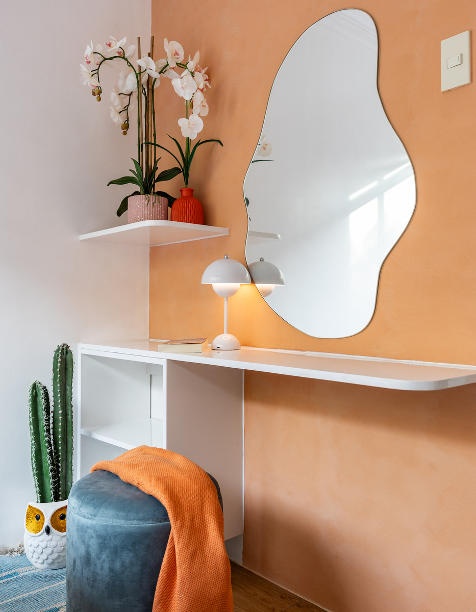 The toilet and bath area combines coziness and functionality, crafted to offer a relaxing yet practical experience. With a clean aesthetic infused with a hint of terracotta Mediterranean charm, this space provides a soothing environment for your personal care routines. Ample storage options keep your essentials organized and within easy reach, while carefully curated details enhance the inviting ambiance.